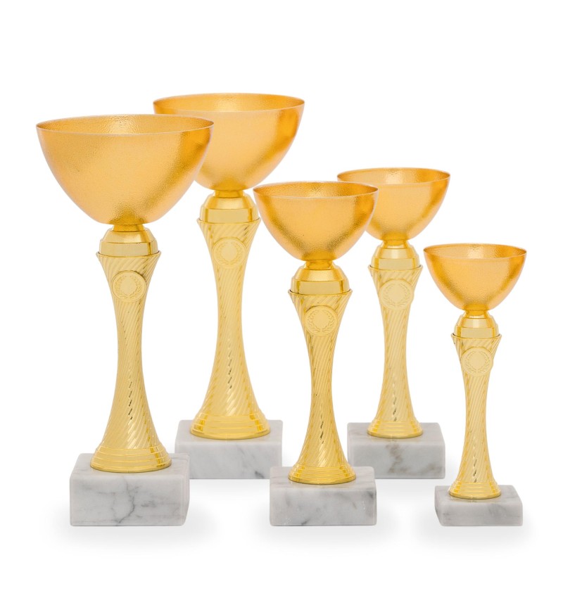 Sportovní zlaté poháry se zlatým kovovým kalichem. Dostupný v pěti různých velikostech. Vyberte si velikost v možnostech.