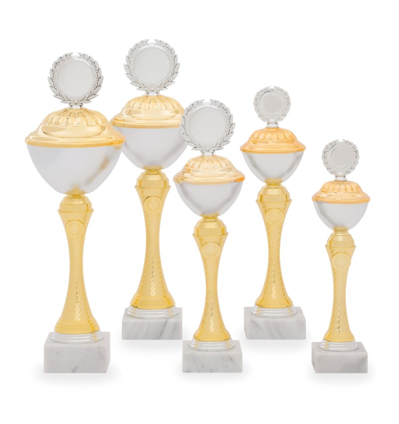Sportovní zlatý pohár se stříbrným kalichem TROFIX. Pohár je dostupný v pěti různých velikostech. Požadovanou velikost si vyberte v možnostech.