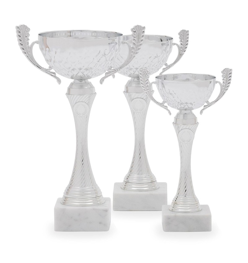 Sportovní, slavnostní stříbrné poháry se zdobeným stříbrným kalichem. Požadovanou velikost poháru si vyberte v možnostech.