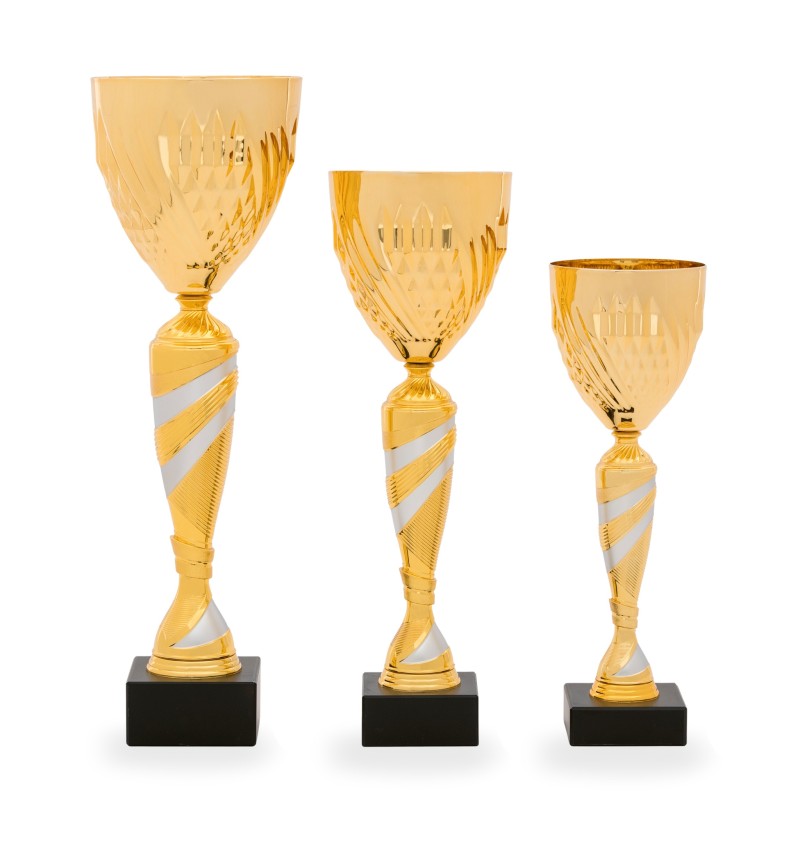 Sportovní zlatý pohár se stříbrným kalichem TROFIX. Pohár je dostupný v pěti různých velikostech. Požadovanou velikost si vyberte v možnostech.