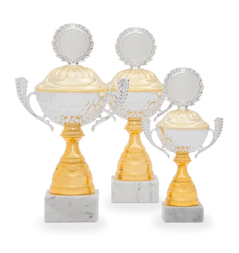 Sportovní zlatý pohár se stříbrným kalichem TROFIX. Pohár je dostupný v pěti různých velikostech. Požadovanou velikost si vyberte v možnostech.