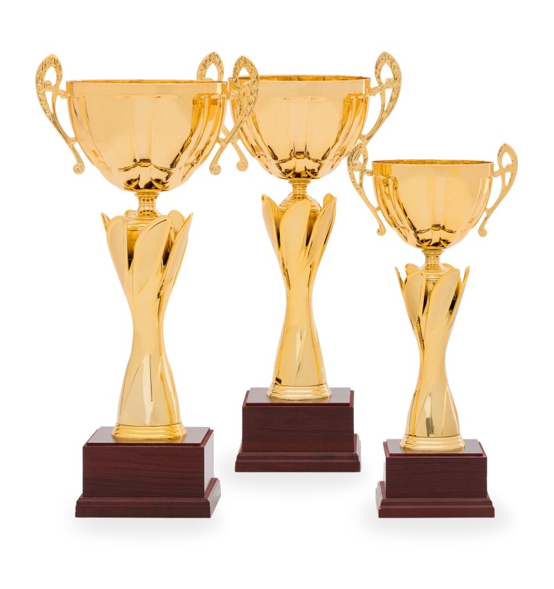 Elegantní, slavnostní, zlaté sportovní poháry s dřevěným podstavcem. Dřevěný podstavec vytváří dokonalý vzhled celkového poháru. Požadovanou velikost poháru si vyberte v možnostech.