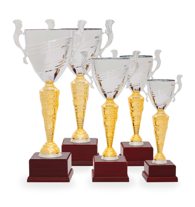 Sportovní stříbrný pohár se zlatým kalichem TROFIX. Pohár je dostupný v pěti různých velikostech. Požadovanou velikost si vyberte v možnostech.