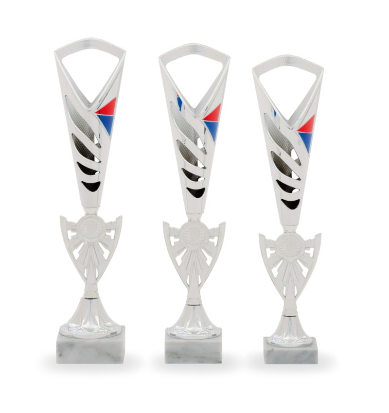 Celoplastový stříbrný pohár s detailem české trikolóry. Pohár je na mramorovém podstavci. K poháru lze vložit emblém.