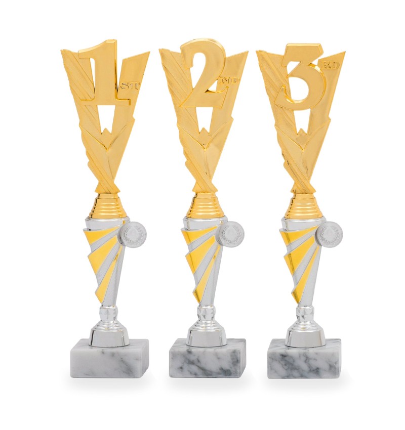 Celoplastový zlatý pohár se stříbrným detailem. Pohár je na mramorovém podstavci. K poháru lze vložit emblém. Požadovaný pohár si vyberte v možnostech.