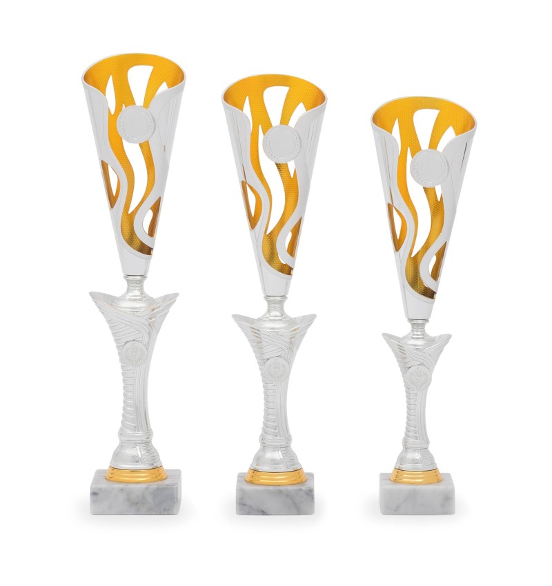 Celoplastový stříbrný pohár se zlatým detailem. Pohár je na mramorovém podstavci. K poháru lze vložit rovnou 2x emblém. Pohár je dostupný ve třech různých velikostech. Požadovanou velikost si vyberte v možnostech.